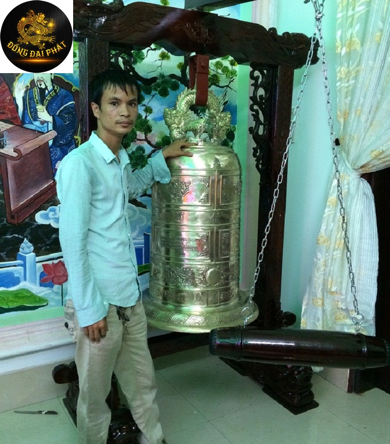 Chuông đồng cao 1.3m trọng lượng 500Kg giá gỗ lim đục trạm tinh xảo bởi làng nghề đồng kị Bắc Ninh.